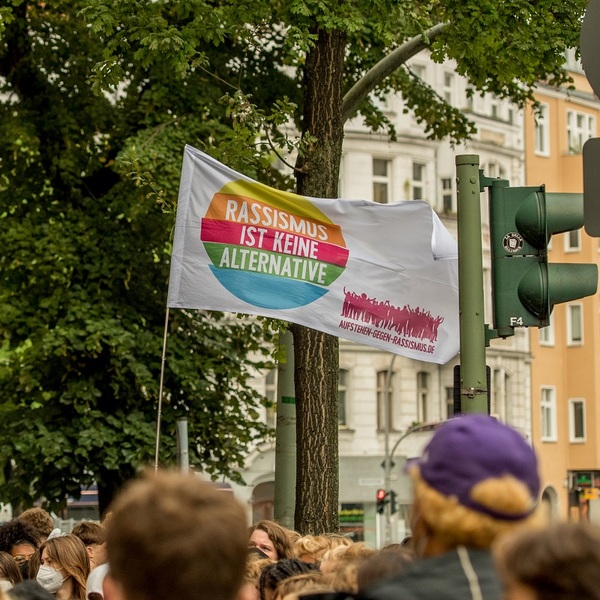 BITTE beachte: Wir sind kein Versandhandel, sondern ehrenamtlich aktiv. Wir versenden nach Zahlungseingang und bemühen uns um frühzeitige Auslieferung. Aber wir können nicht garantieren, dass deine Bestellung in weniger als 10 Tagen bei dir ist.Fahne mit Grafiken: "Rassismus ist keine Alternative" und "Aufstehen gegen Rassismus" - Größe: 75 x 150 cm