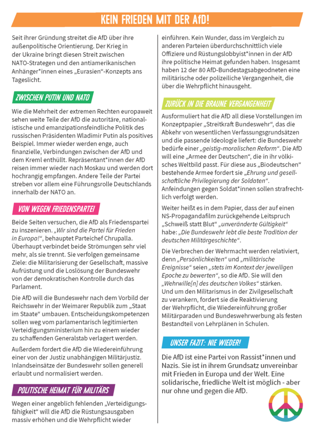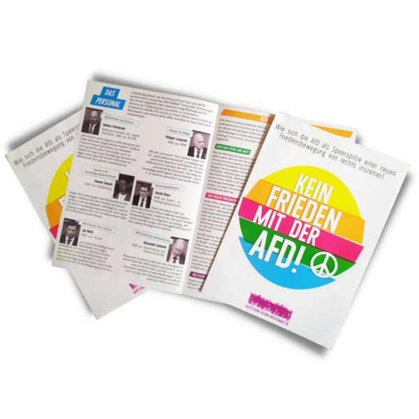 BITTE beachte: Wir sind kein Versandhandel, sondern ehrenamtlich aktiv. Wir versend...320 Faltflyer zur Selbstinszenierung der AfD als vermeintliche "Friedenspartei"