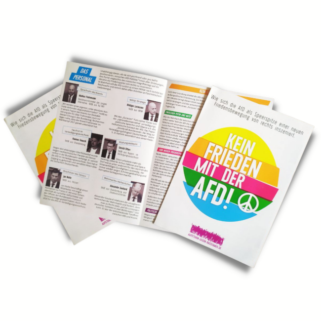 320 Faltflyer zur Selbstinszenierung der AfD als vermeintliche "Friedenspartei"
