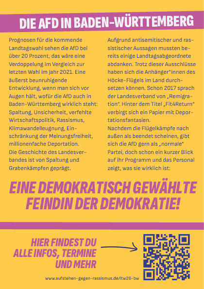 Weitere Infos zur Wahl findest du auch hier: https://www.aufstehen-gegen-rassismus.de/ltw26-bw/