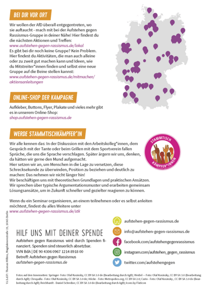 Diesen und weitere aktuell verfügbaren Flyer (u.a. zum Antifeminismus der AfD) und mehr findest du auf: https://www.aufstehen-gegen-rassismus.de/material/flyer-etc/