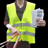 gelbe Warnweste mit dem Aufdruck "Liberté Égalité Fight AfD" auf der Rückseite