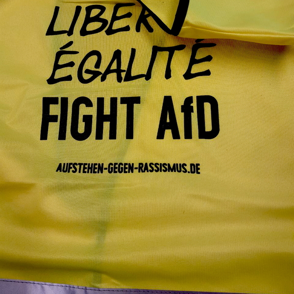 BITTE beachte: Wir sind kein Versandhandel, sondern ehrenamtlich aktiv. Wir versenden nach Zahlungseingang und bemühen uns um frühzeitige Auslieferung. Aber wir können nicht garantieren, dass deine Bestellung in weniger als 10 Tagen bei dir ist.gelbe Warnweste mit dem Aufdruck "Liberté Égalité Fight AfD" auf der Rückseite